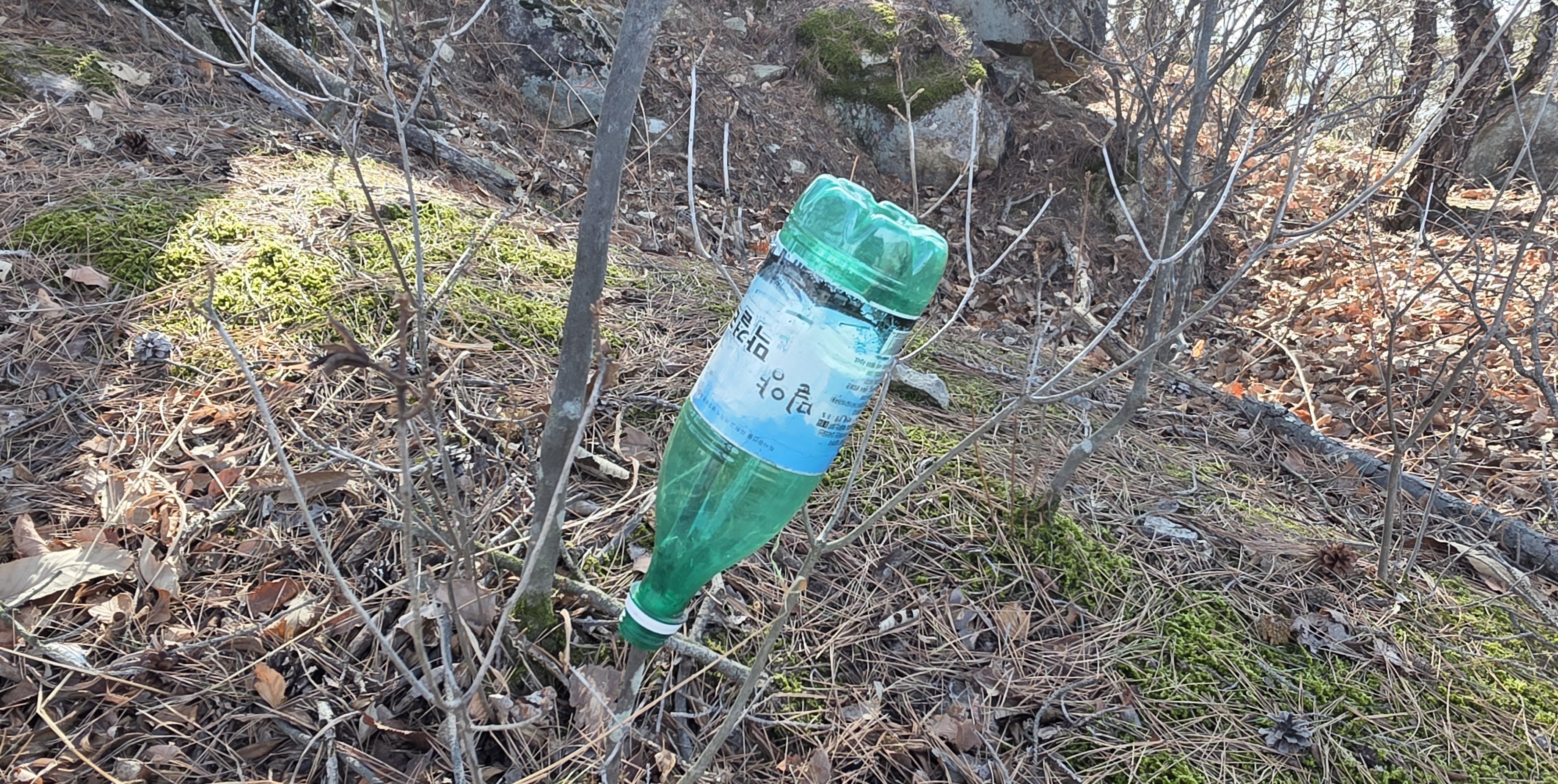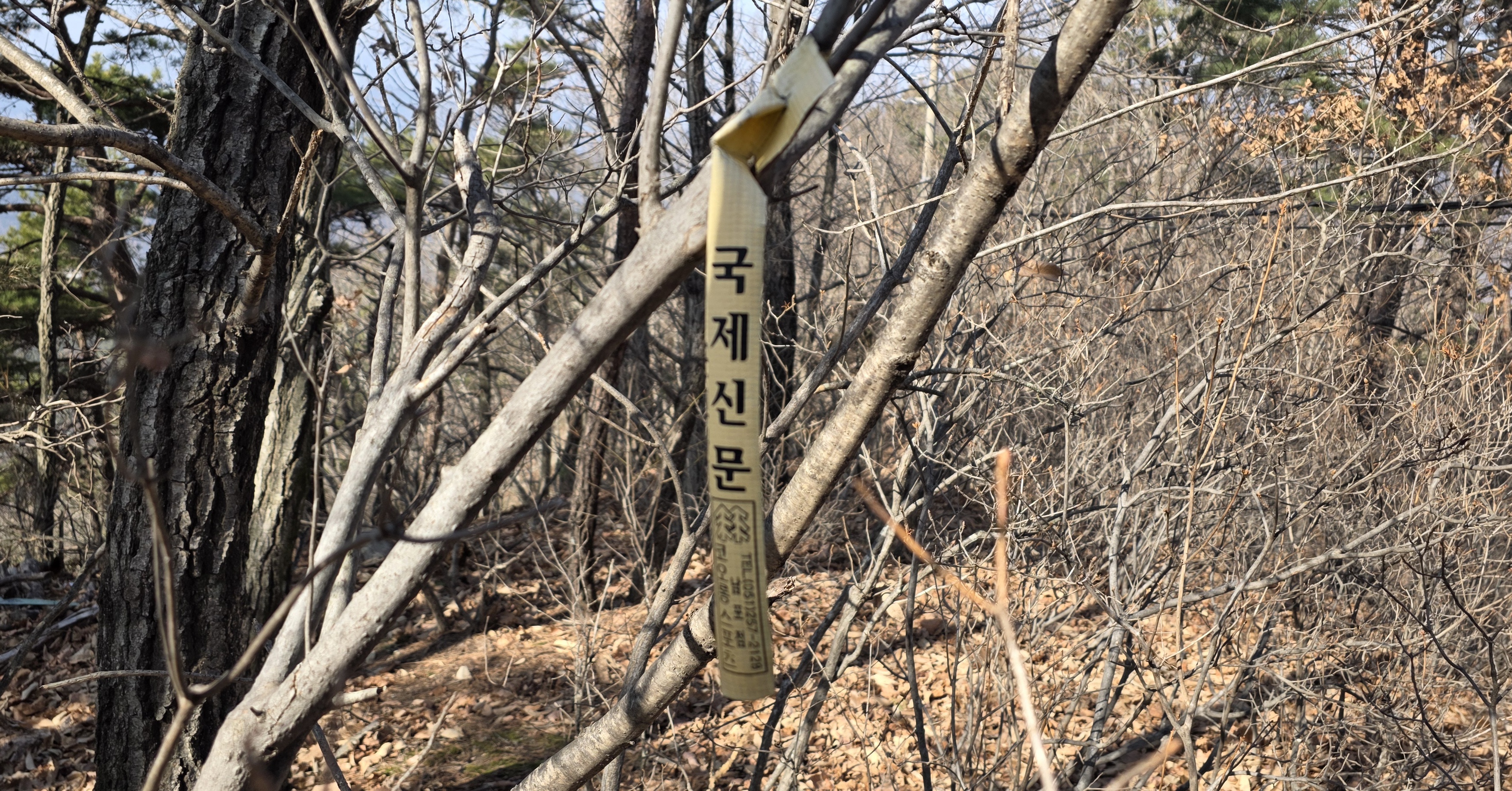 ▲2008년, 지금으로 부터 18년전에 매달아 놓은 국제신문 근교산 취재팀의 리본이 빛바랜 모습이다...