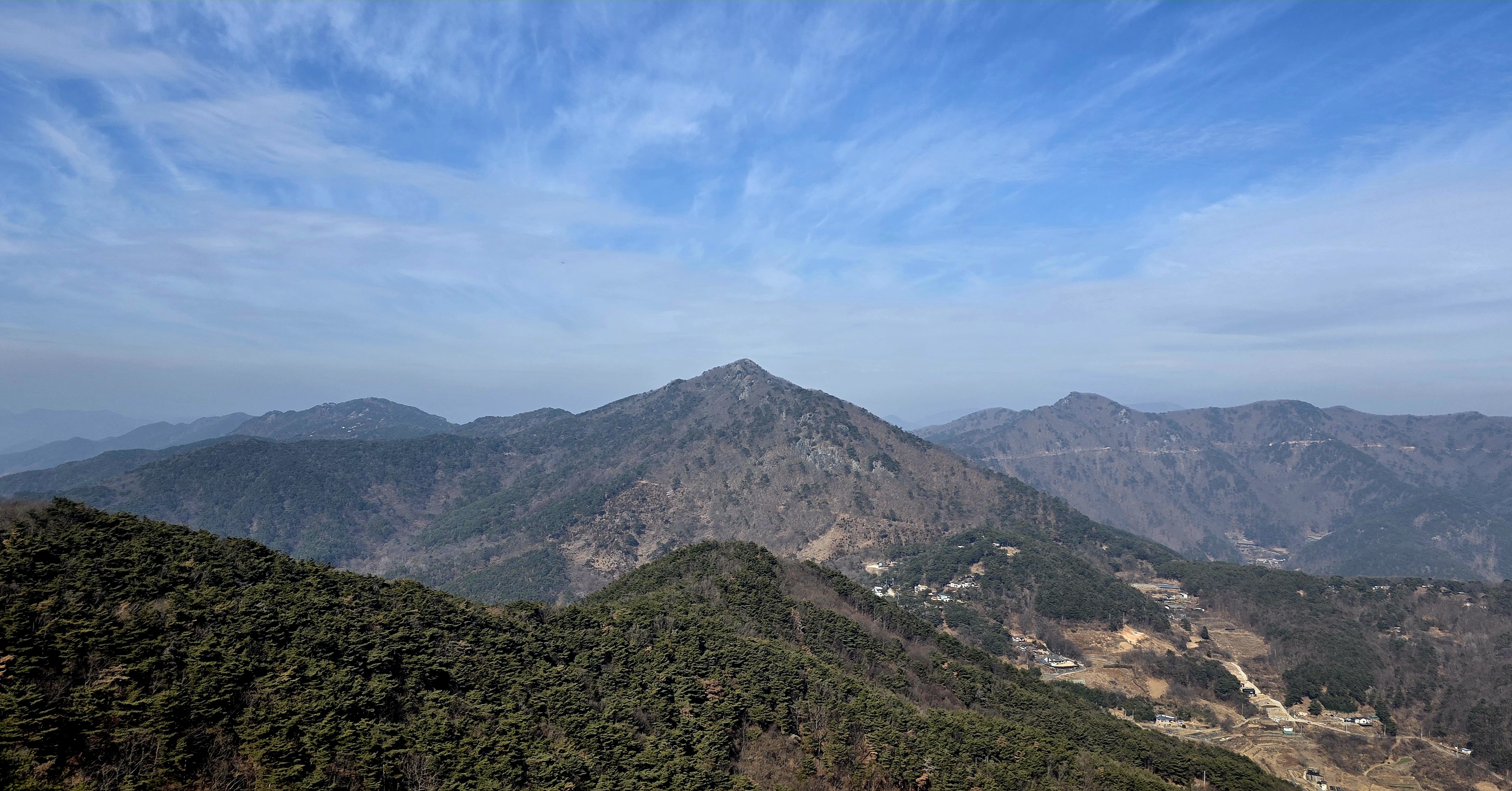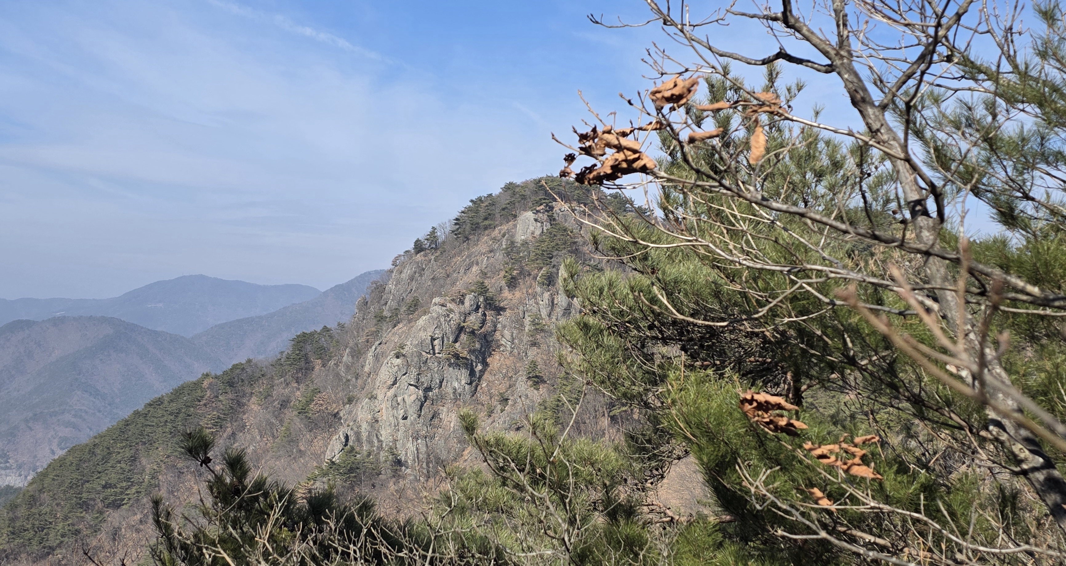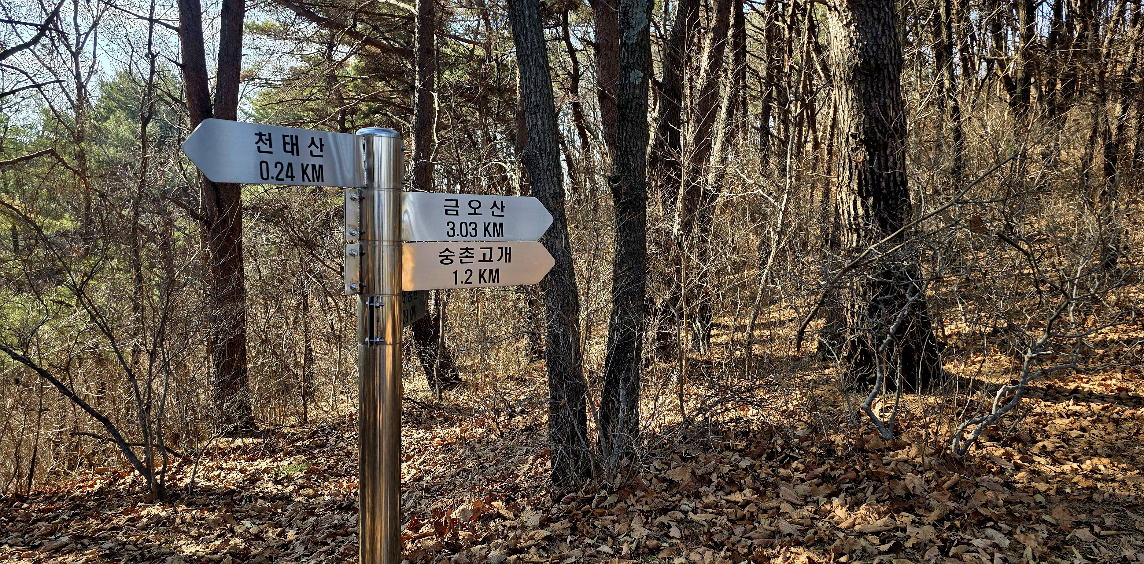 숭촌고개 하나를 사이에 두고 능선으로 이어진 천태산과 금오산은 조망이 빼어나다.